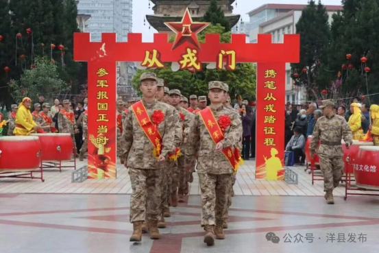 3月12日,洋縣2026年上半年歡送新兵入伍暨慶送立功喜報儀式在開明廣場舉行。縣人大常委會主任李國鴻,縣政協主席路建俠,縣委常委、政法委書記王永紅,縣委常委、常務副縣長霍波等領導與相關部門負責人、新兵及立功軍人家屬代表一起參加了活動。