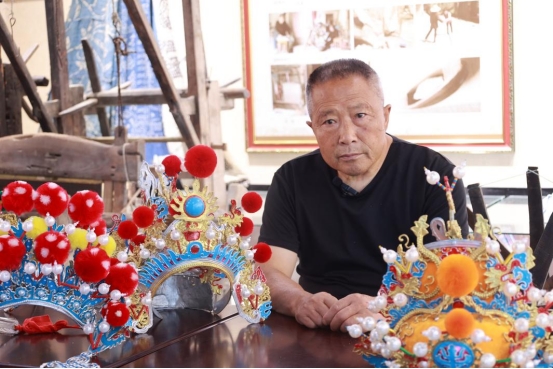 文脈賡續(xù):非遺傳承的時(shí)代擔(dān)當(dāng)。姚振華老師自1979年起,便投身于這一工藝,至今已逾四十六載。歲月如梭,但姚老師對這門手藝的熱情卻從未減退半分。更令人欣喜的是,他的兒子也被父親的執(zhí)著與堅(jiān)守所打動,一有空余時(shí)間就投身到戲劇頭帽制作中。他們偶爾并肩坐在工作室里,一起探討設(shè)計(jì)、一起制作頭帽,豐富的經(jīng)驗(yàn)和新穎的想法碰撞出奇妙的火花,為這項(xiàng)古老的技藝注入了新活力。2013年,洋縣戲劇頭帽制作技藝被列入省級非物質(zhì)文化遺產(chǎn)代表性項(xiàng)目名錄,姚振華老師也被認(rèn)定為“省級非物質(zhì)文化遺產(chǎn)名錄項(xiàng)目代表性傳承人”。