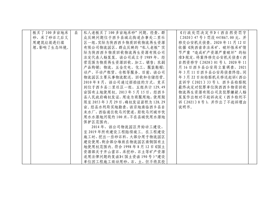 中共漢中市委 漢中市人民政府關于省第四生態環境保護督察組交辦生態環境問題調查處理情況的通報