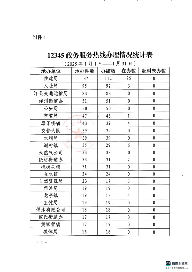 關于2025年1月份12345政務服務熱線及市(縣)長信箱等群眾訴求辦理情況的通報
