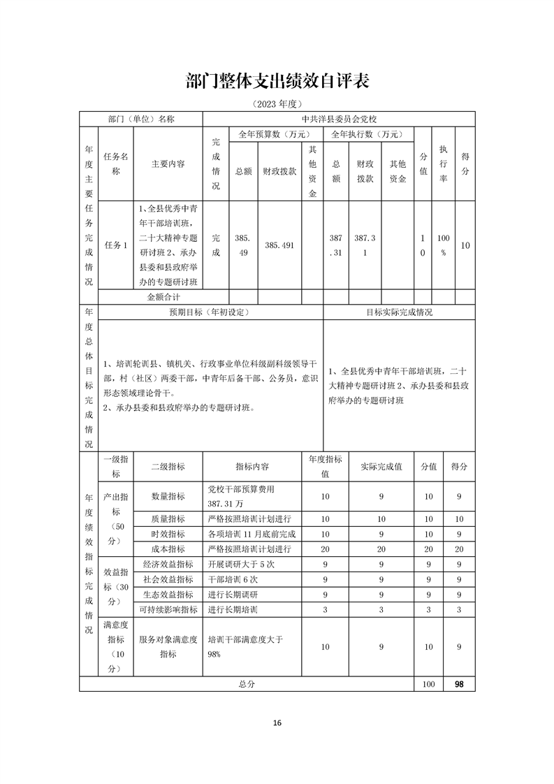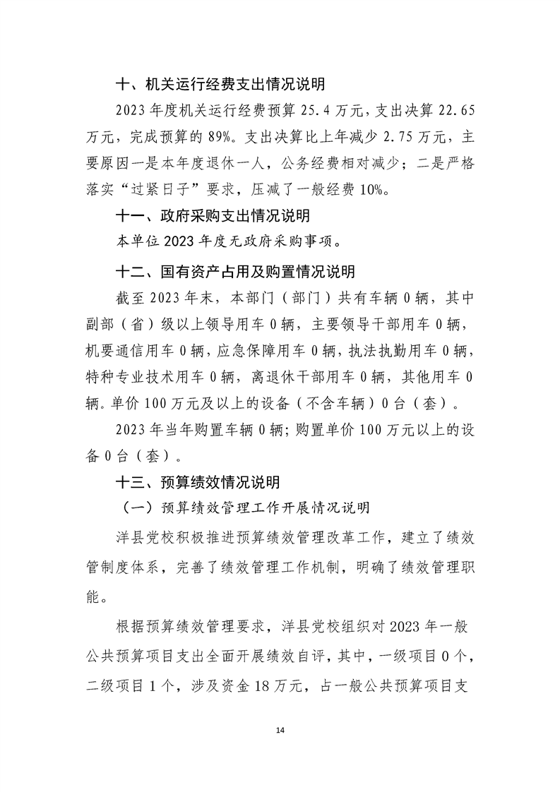 中共洋縣委員會(huì)黨校2023年度部門決算公開 |