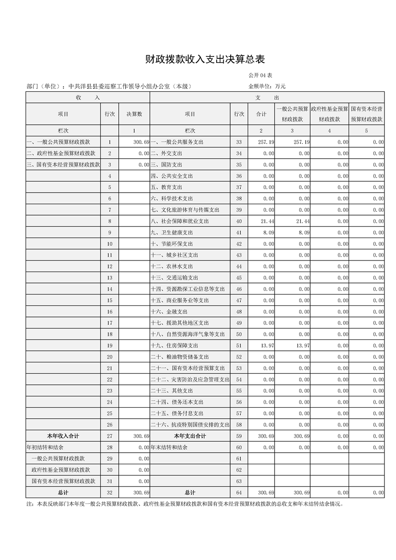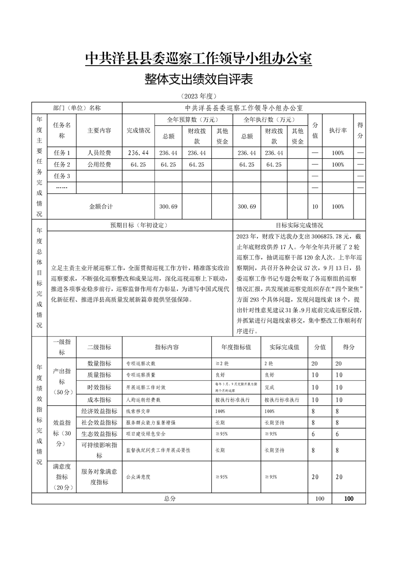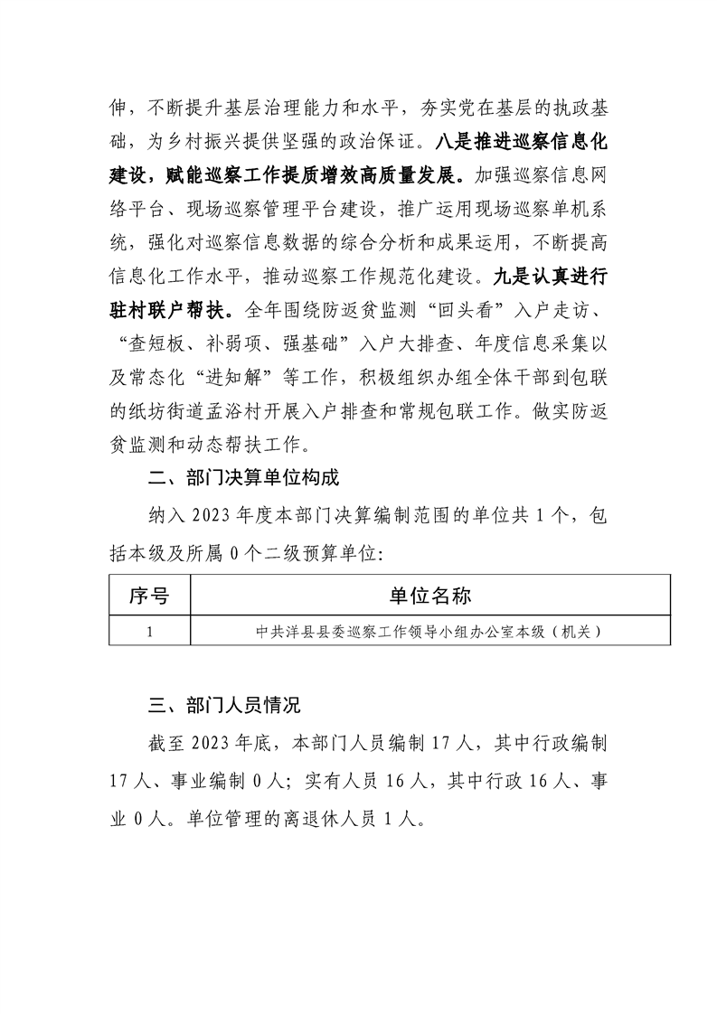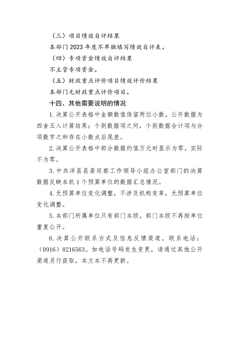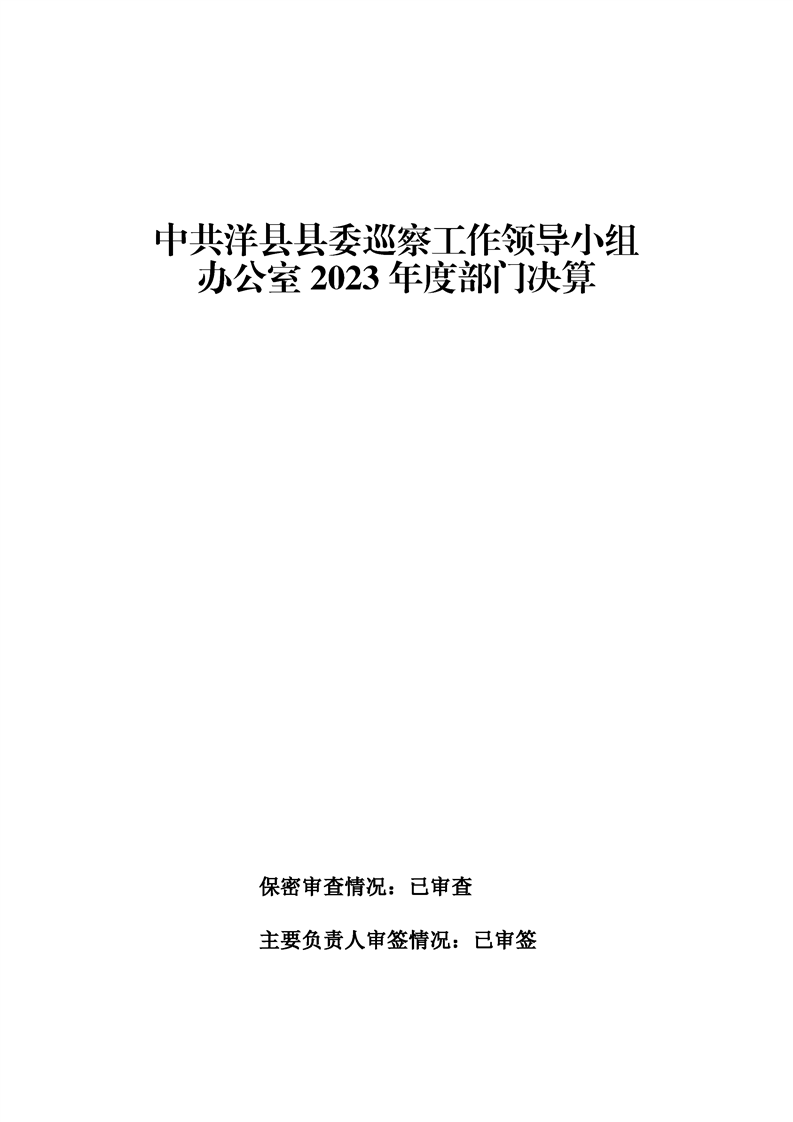 中共洋縣縣委巡察工作領(lǐng)導(dǎo)小組辦公室2023年部門決算公開 |