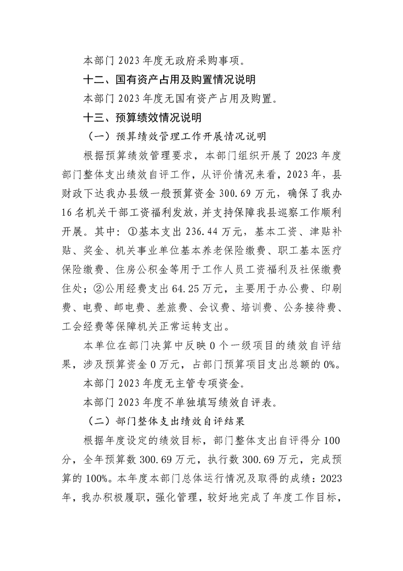 中共洋縣縣委巡察工作領(lǐng)導(dǎo)小組辦公室2023年部門決算公開