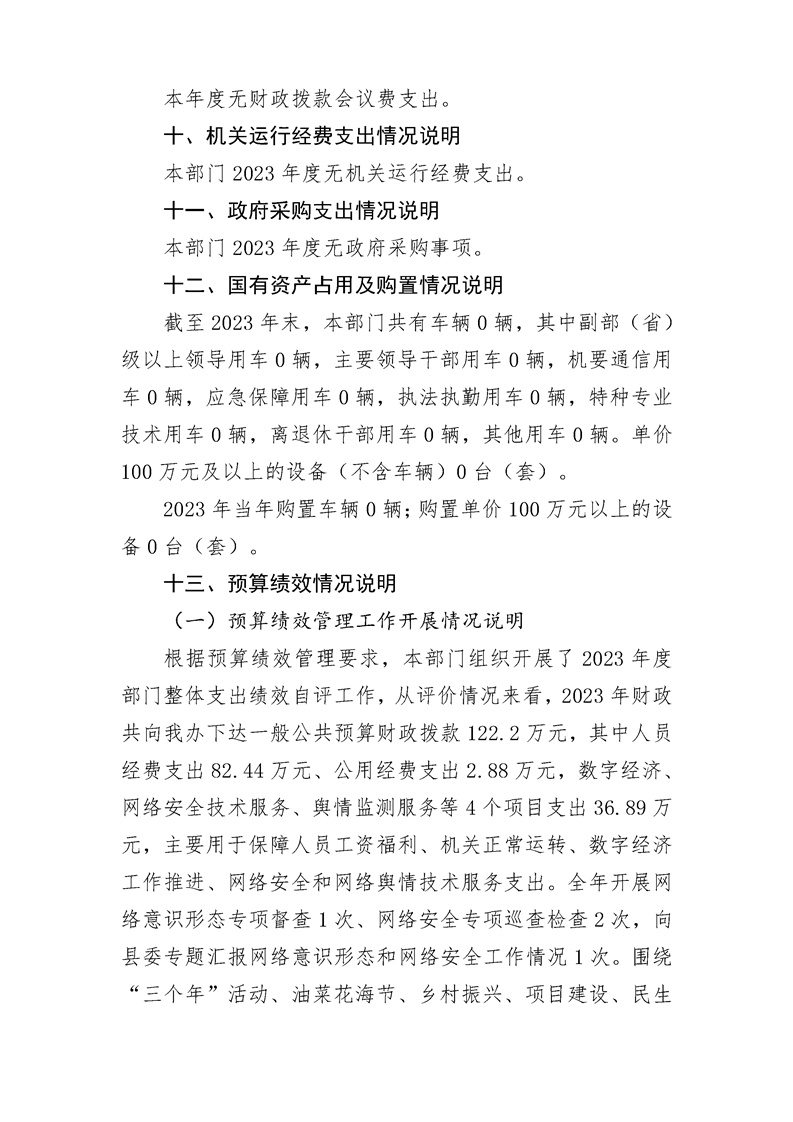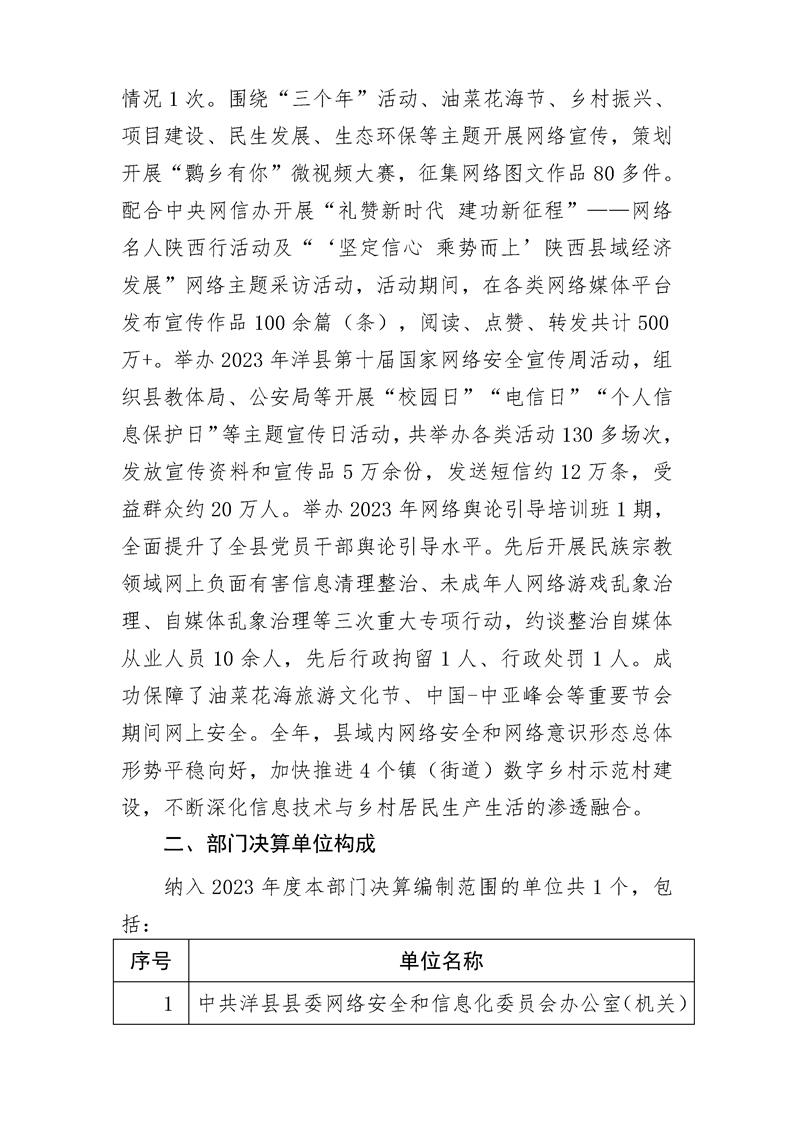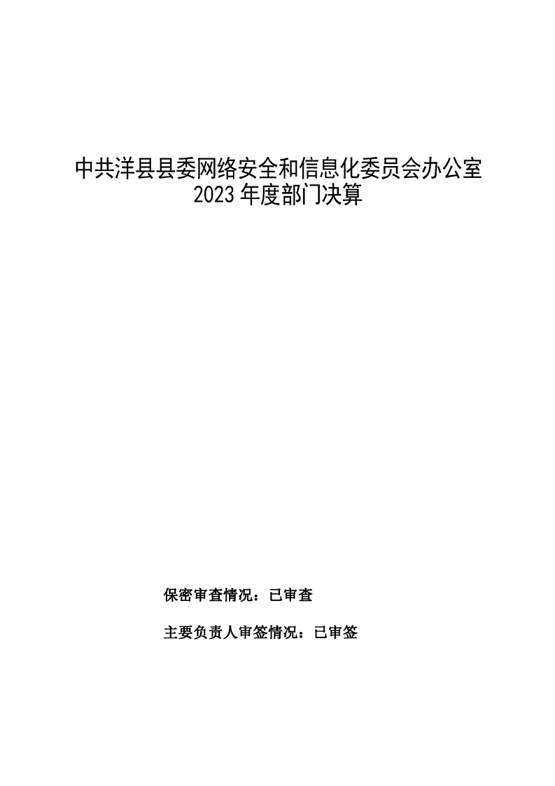 中共洋縣縣委網絡安全和信息化委員會辦公室2023年度部門決算公開