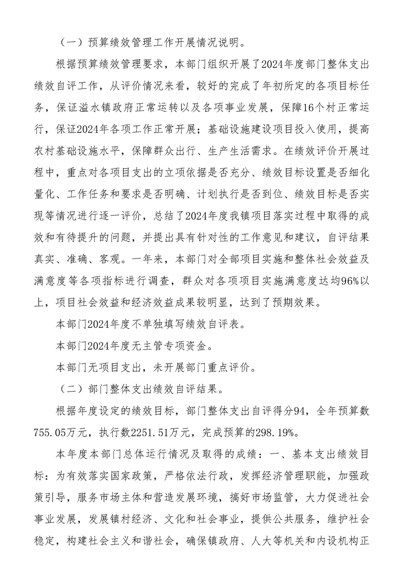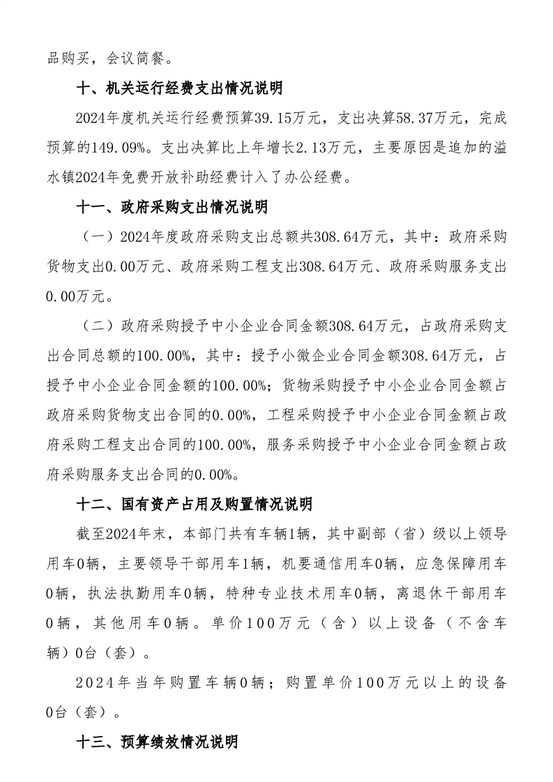 洋縣溢水鎮(zhèn)人民政府2024年度部門決算