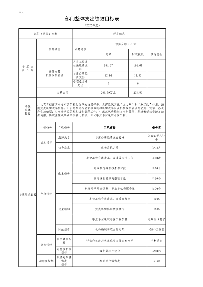 中共洋縣縣委機構編制委員會辦公室2025年部門預算公開
