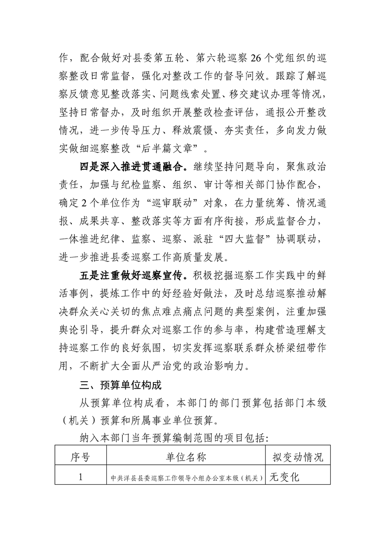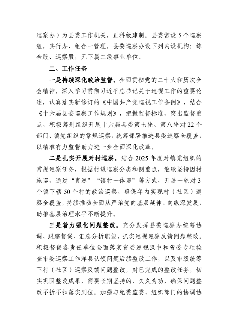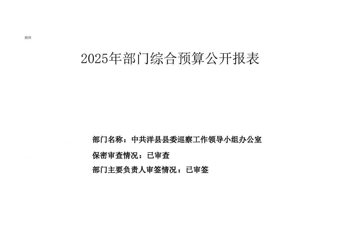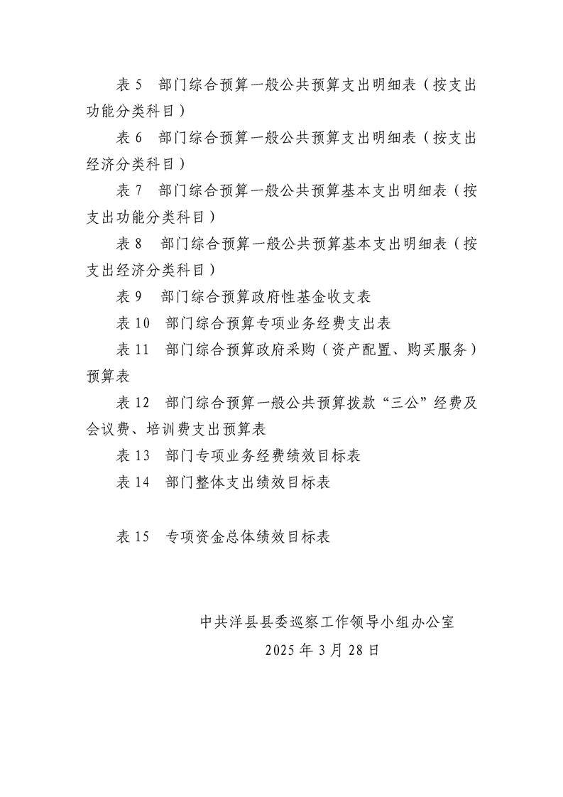 中共洋縣縣委巡察工作領導小組辦公室2025年部門預算公開