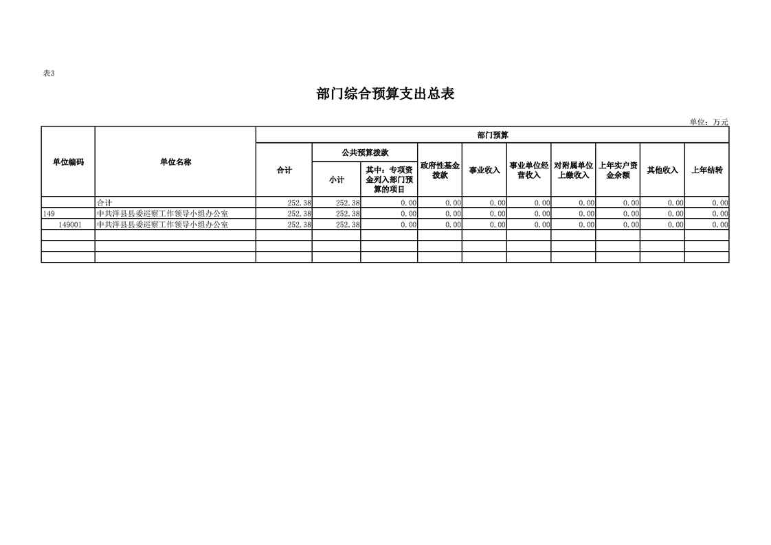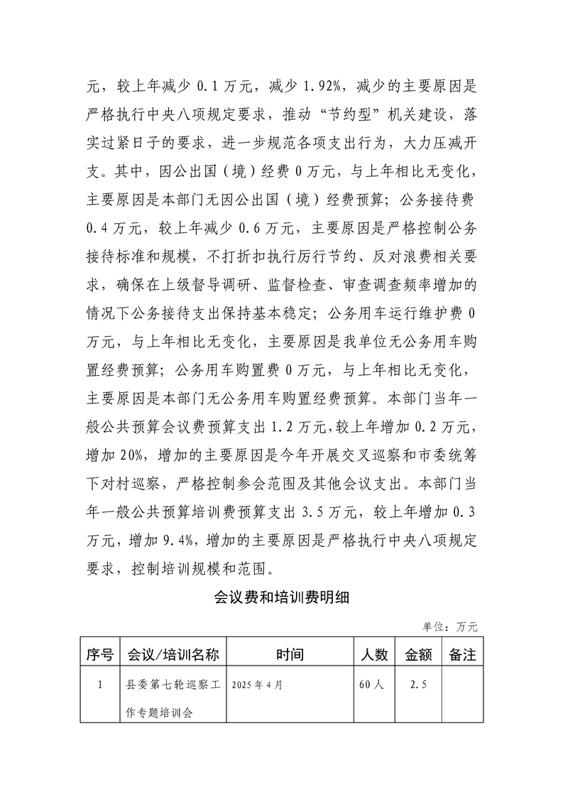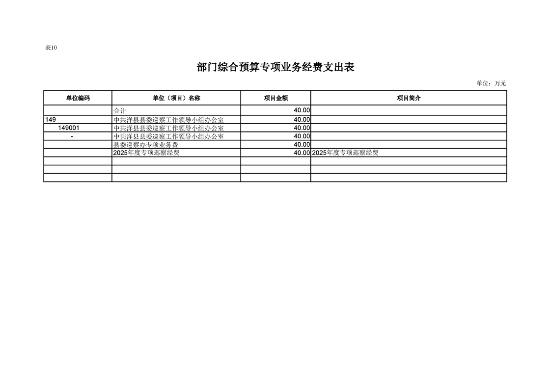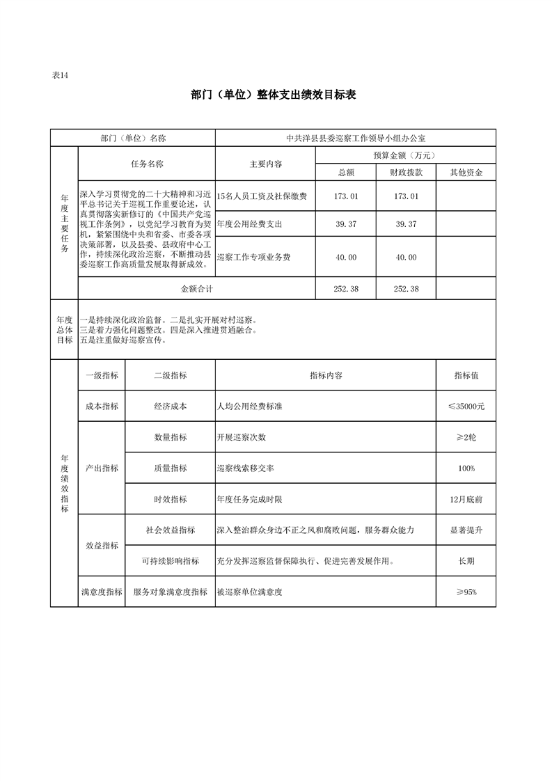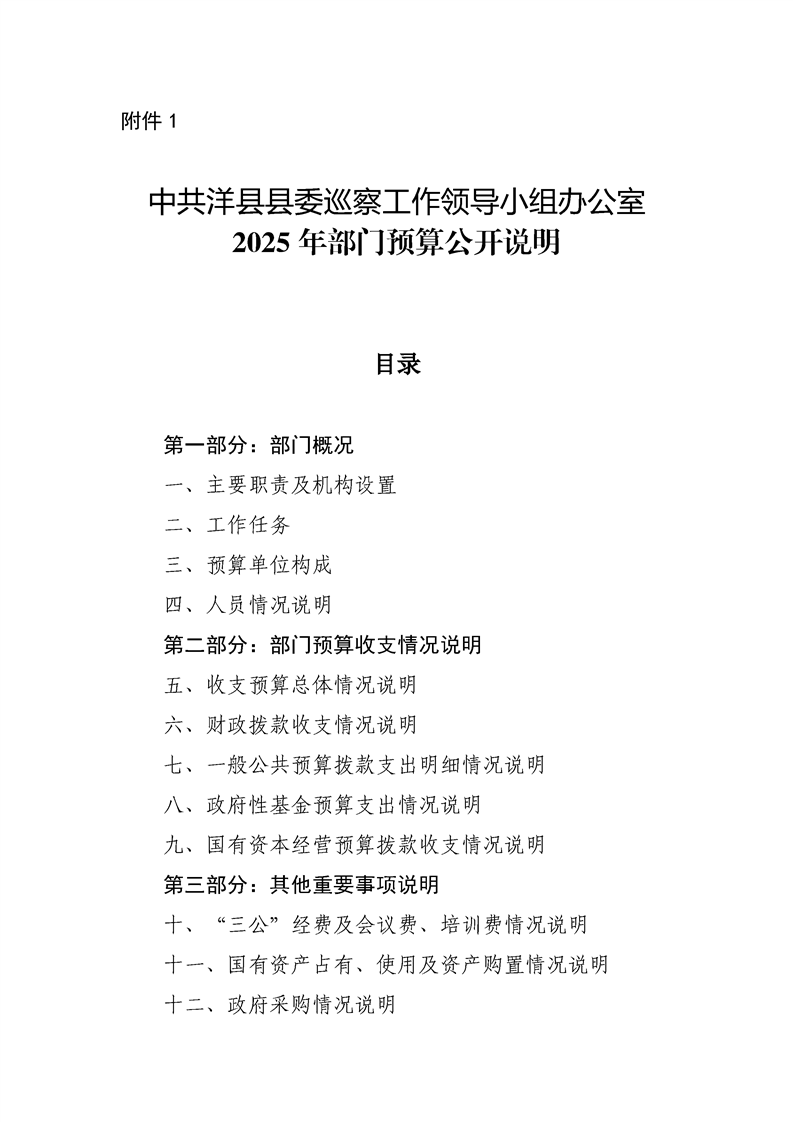 中共洋縣縣委巡察工作領導小組辦公室2025年部門預算公開