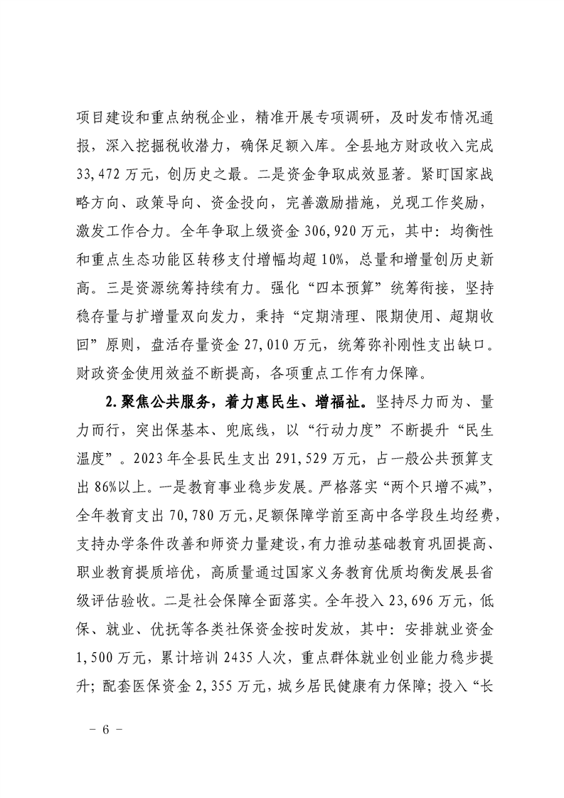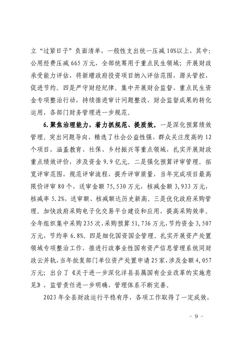 洋縣2023年財政預算執行情況和2024年財政預算草案的報告