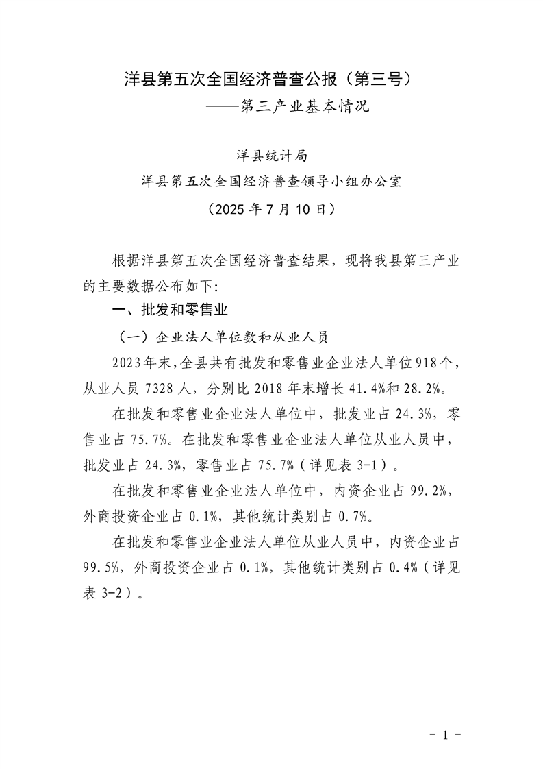 洋縣第五次全國經濟普查公報(第三號)——第三產業基本情況