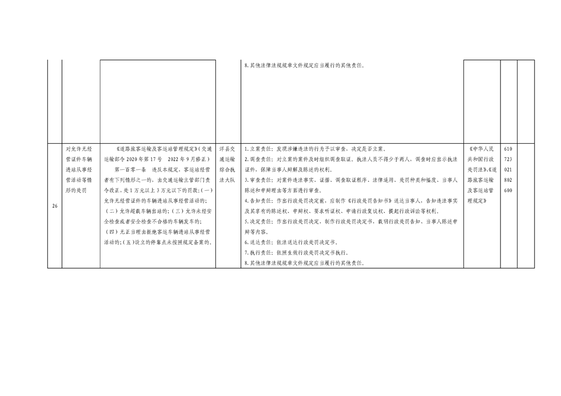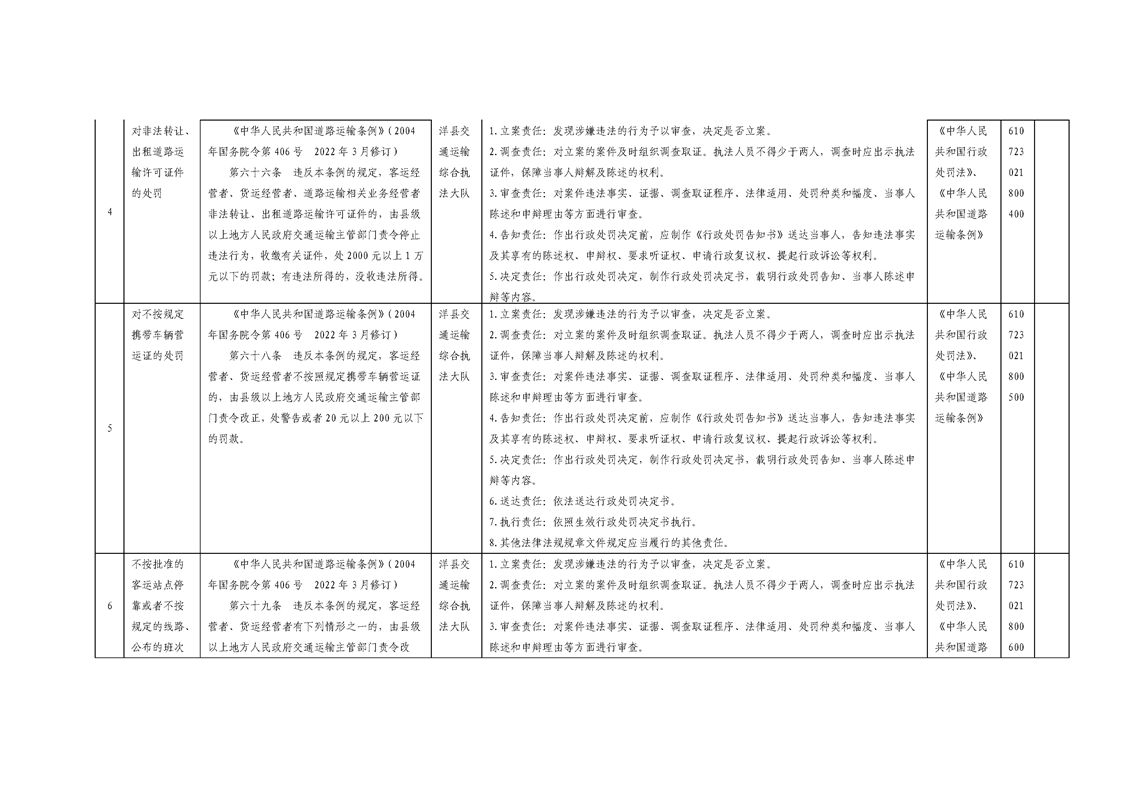 洋縣交通運(yùn)輸局行政執(zhí)法公示