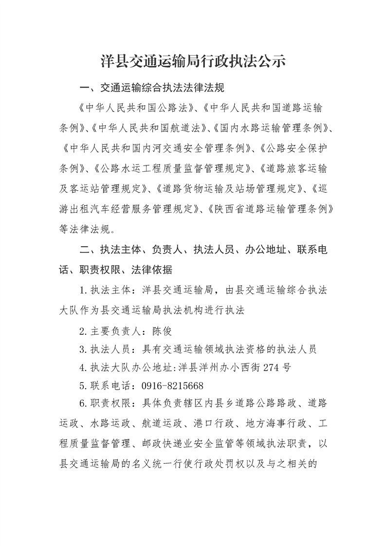 洋縣交通運(yùn)輸局行政執(zhí)法公示 |