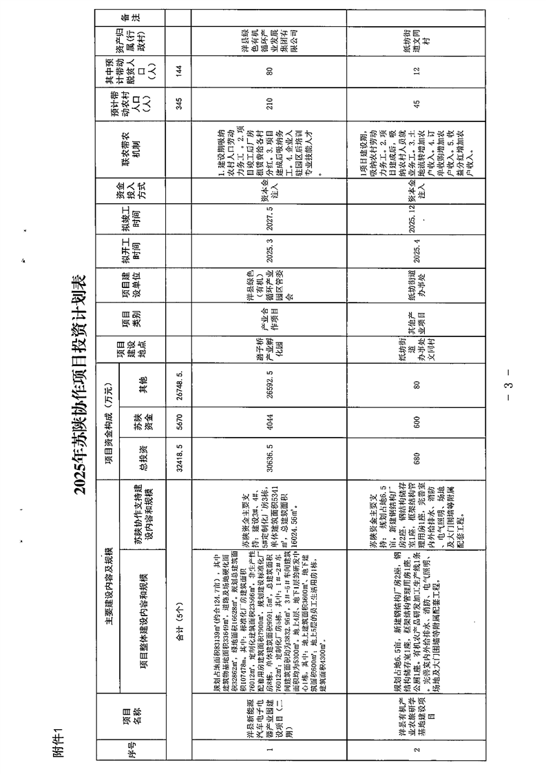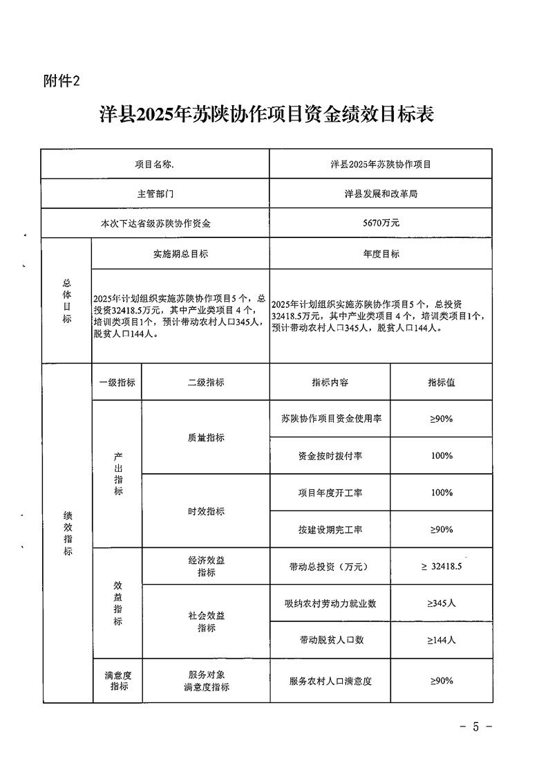 洋縣人民政府辦公室關于下達2025年蘇陜協作項目投資計劃的通知