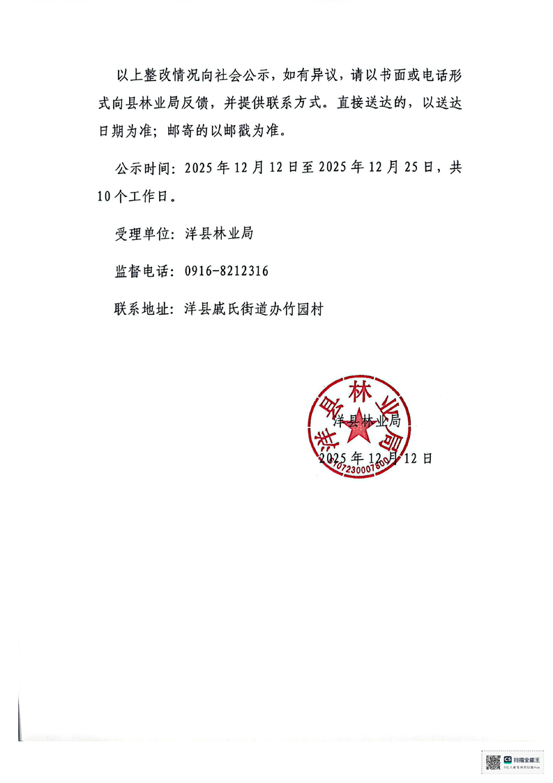 洋縣林業局關于2025年秦嶺生態環境保護突出問題整改完成情況公示