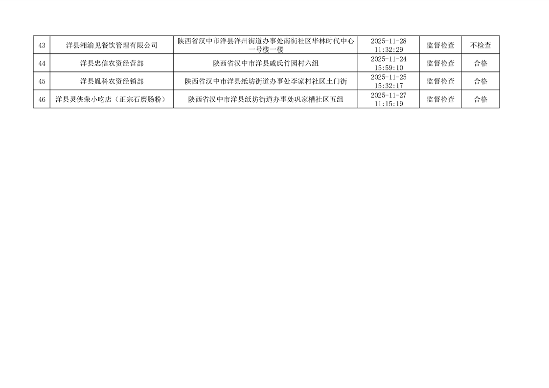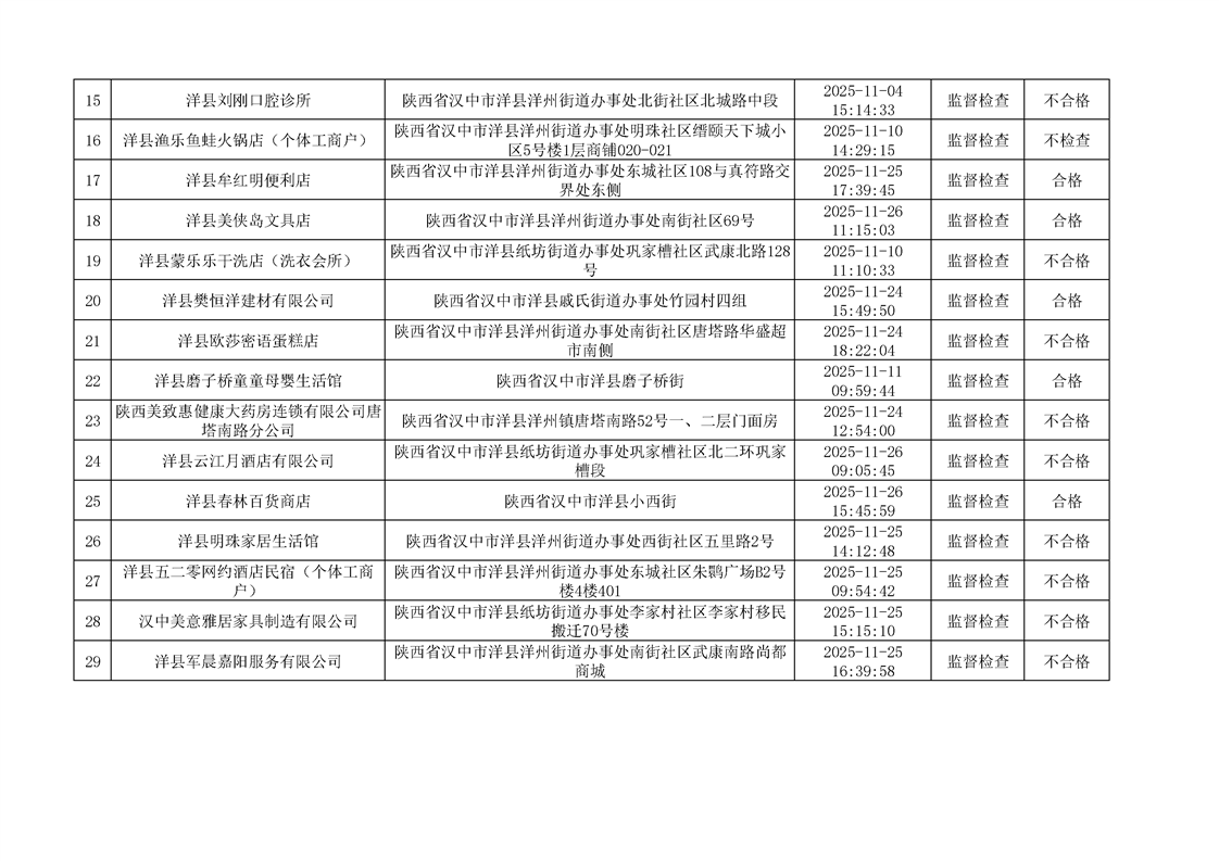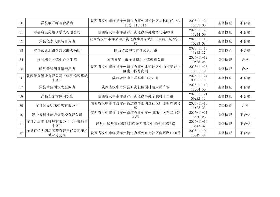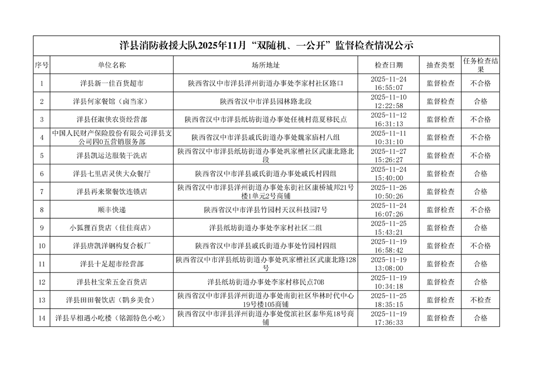 洋縣消防救援大隊2025年11月“雙隨機、一公開”監督檢查情況公示