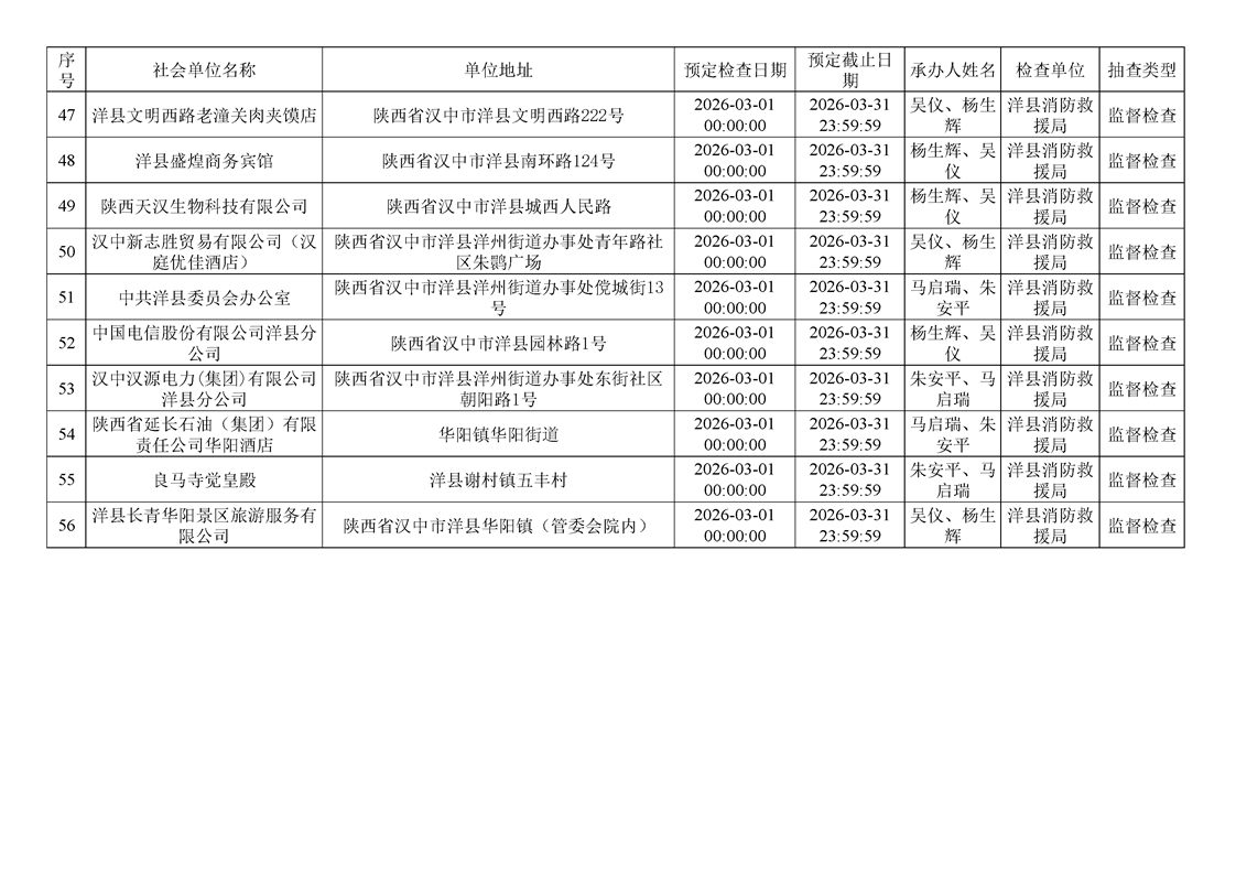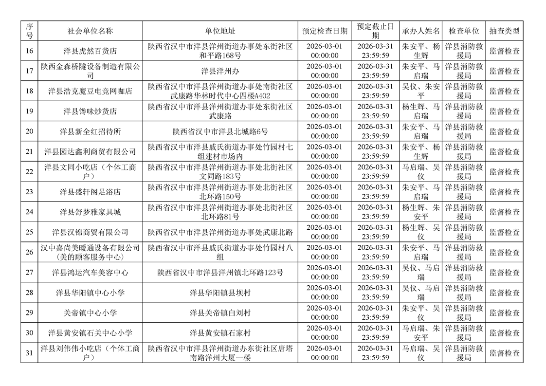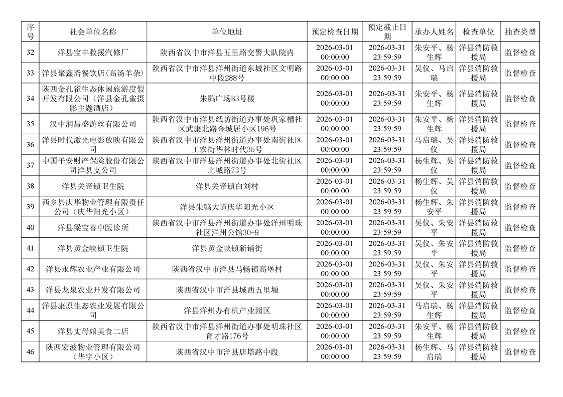 洋縣消防救援局2026年3月“雙隨機(jī)、一公開(kāi)”監(jiān)督抽查計(jì)劃公示