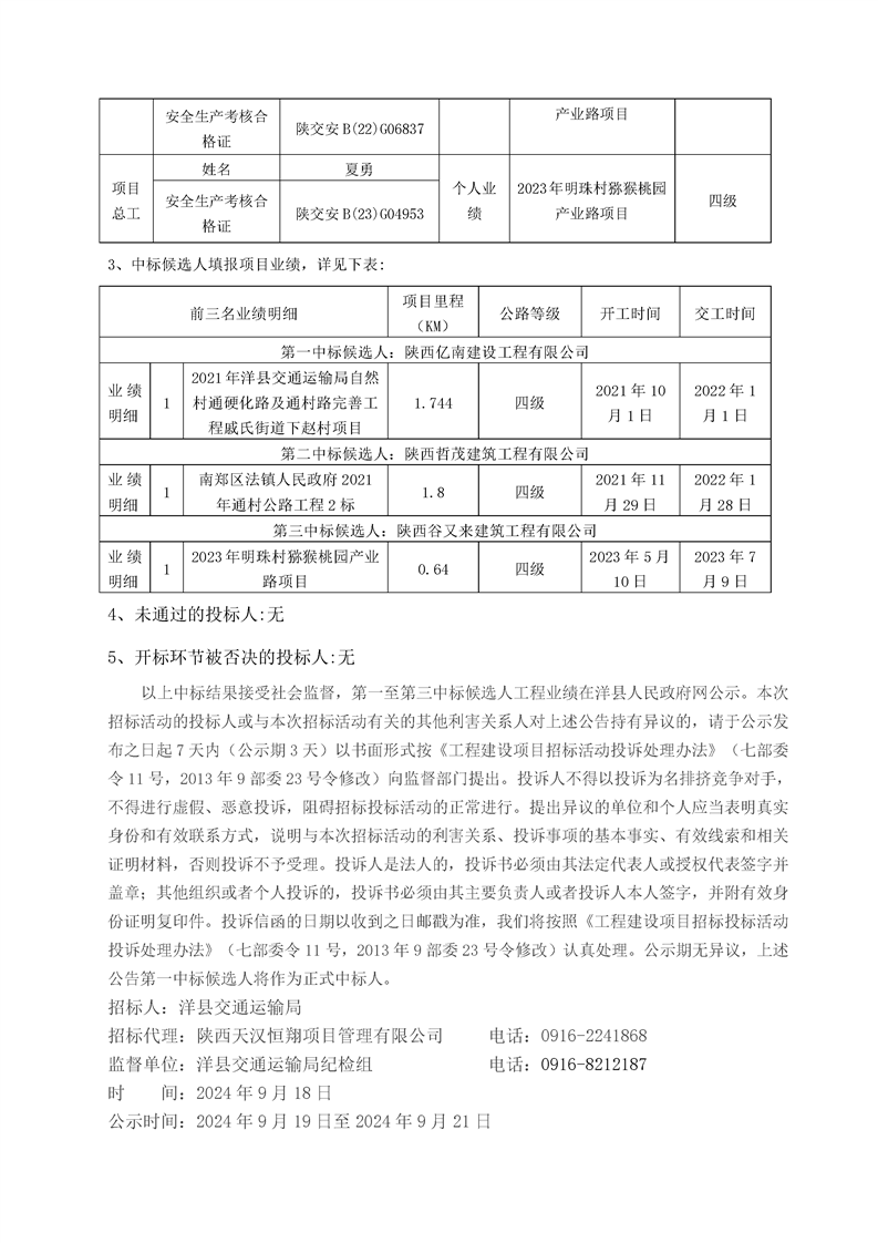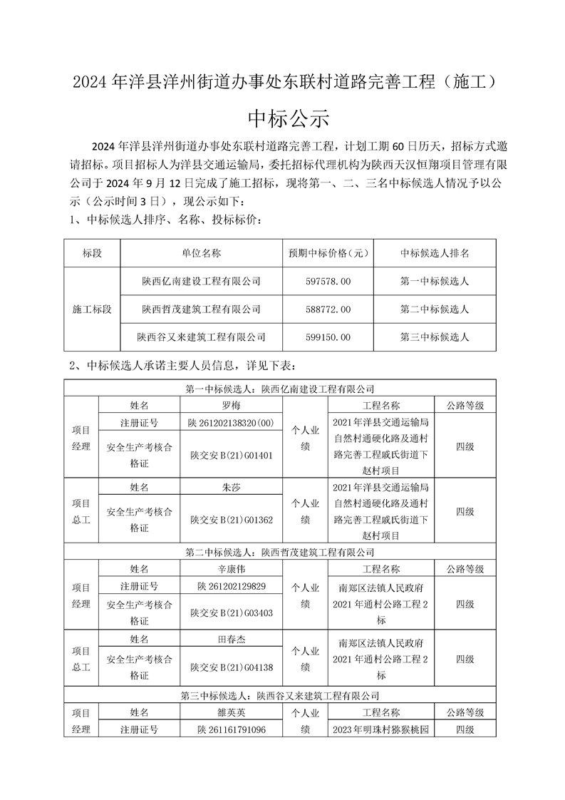 2024年洋縣洋州街道辦事處東聯(lián)村道路完善工程(施工)中標(biāo)公示 |