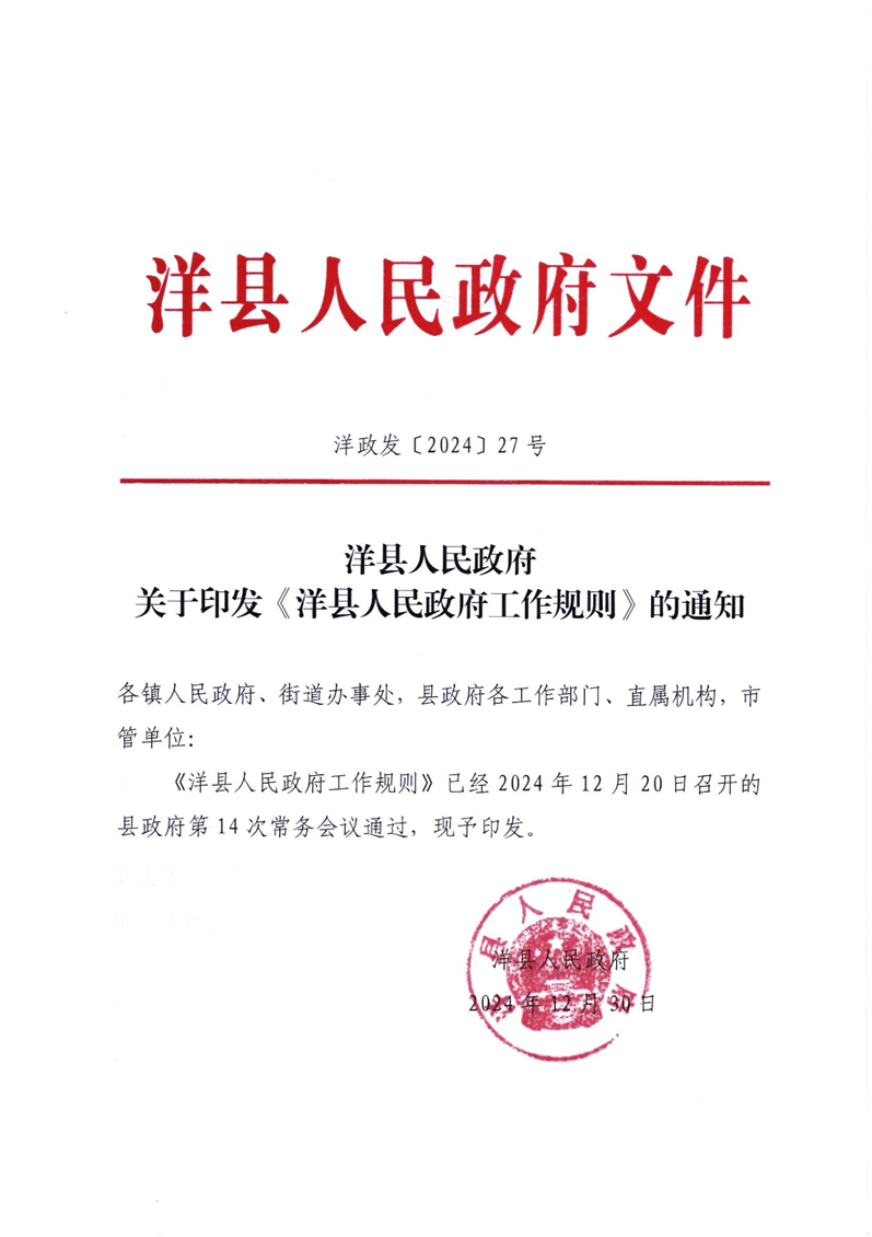 洋政發〔2024〕27號 關于印發《洋縣人民政府工作規則》的通知