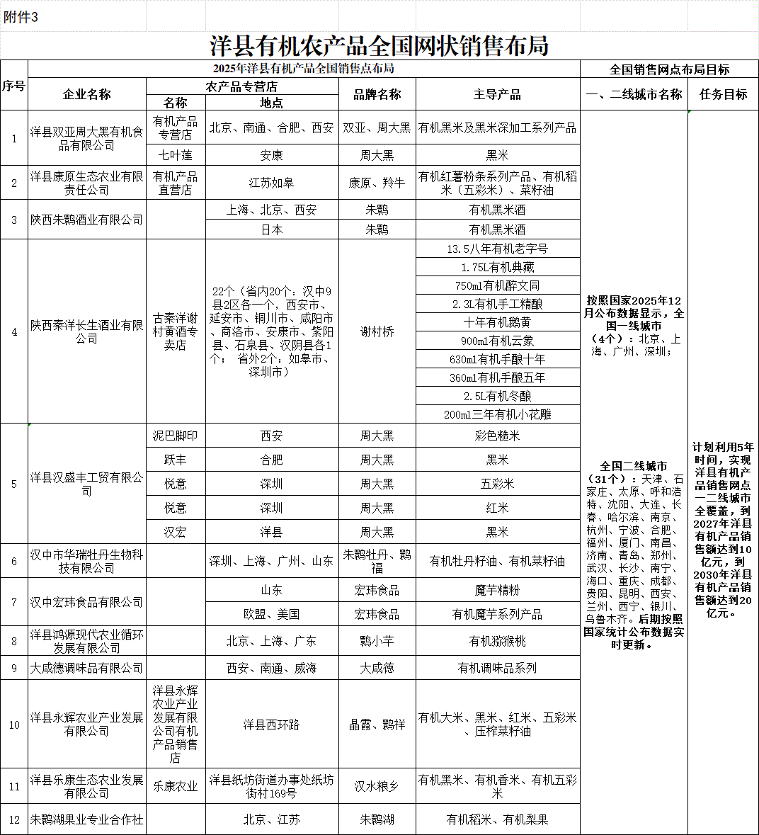 1.鞏固提升傳統渠道。持續舉辦“朱鹮之原·有機洋縣”產業推介會等活動。精準組織企業參加進博會、絲博會、在外漢中商會年會等重點展會。用好蘇陜協作和中央定點幫扶消費,在鞏固西安、漢中等本地市場的基礎上,重點開拓北京、長三角、大灣區、成渝等高端消費市場,每年舉辦不少于2場省外專場推介活動。(縣經合中心牽頭,縣農業農村局、縣經貿局、縣工商聯配合)