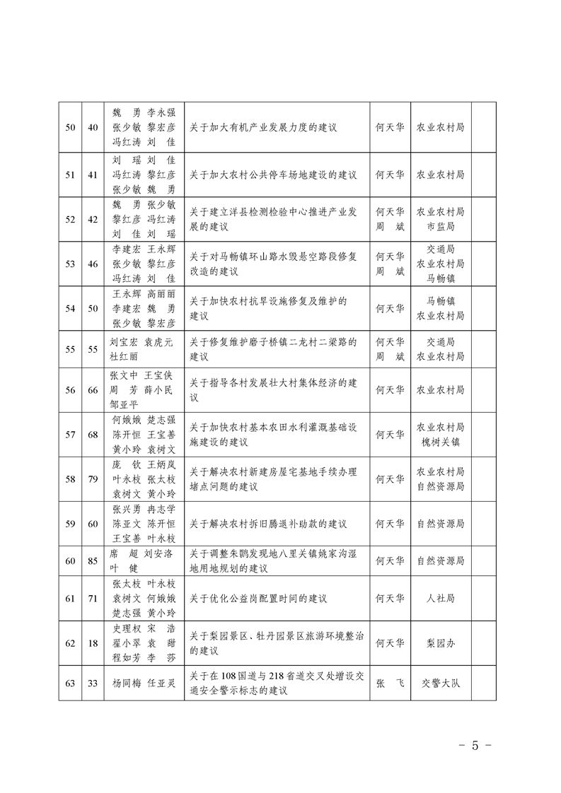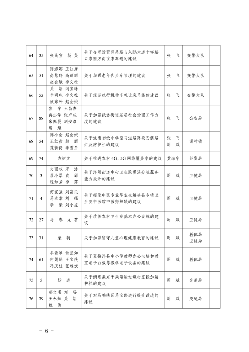 洋縣十八屆人大四次會議和政協洋縣十四屆四次會議期間,轉縣政府辦理的人大代表建議88件、參考件55件,政協委員提案97件、參考件52件。這些建議、提案內容涉及全縣經濟社會發展各個方面,為了切實做好建議、提案辦理工作,經縣政府同意,現將有關事項通知如下: