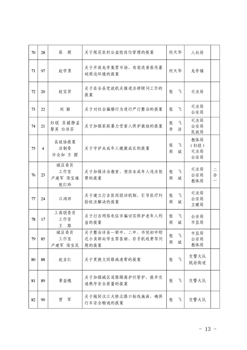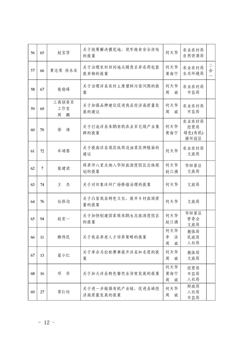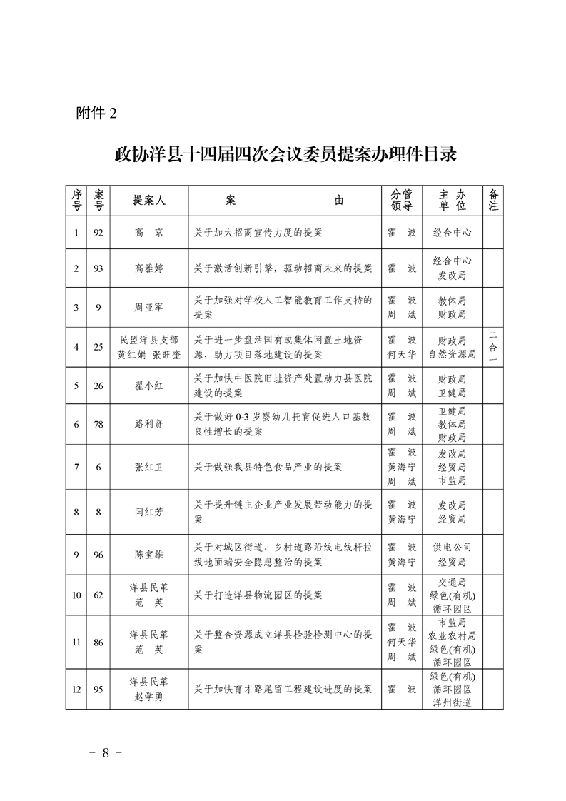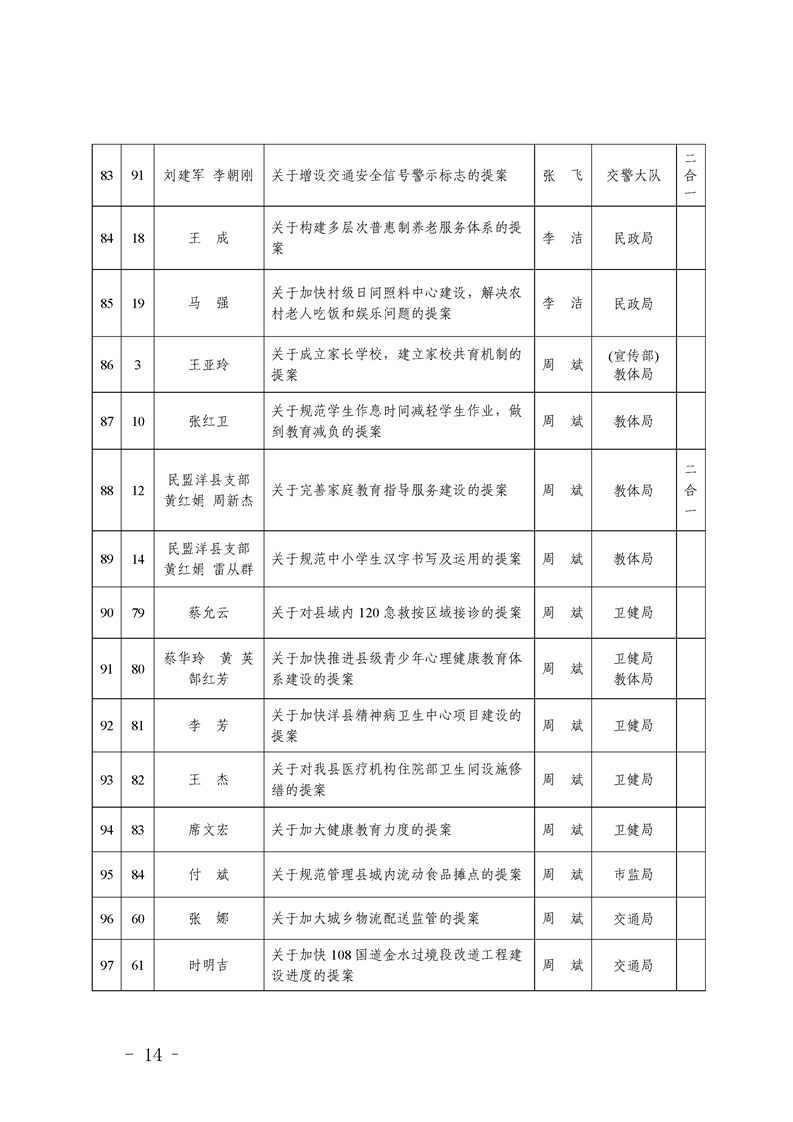 2.政協洋縣十四屆四次會議委員提案辦理件目錄