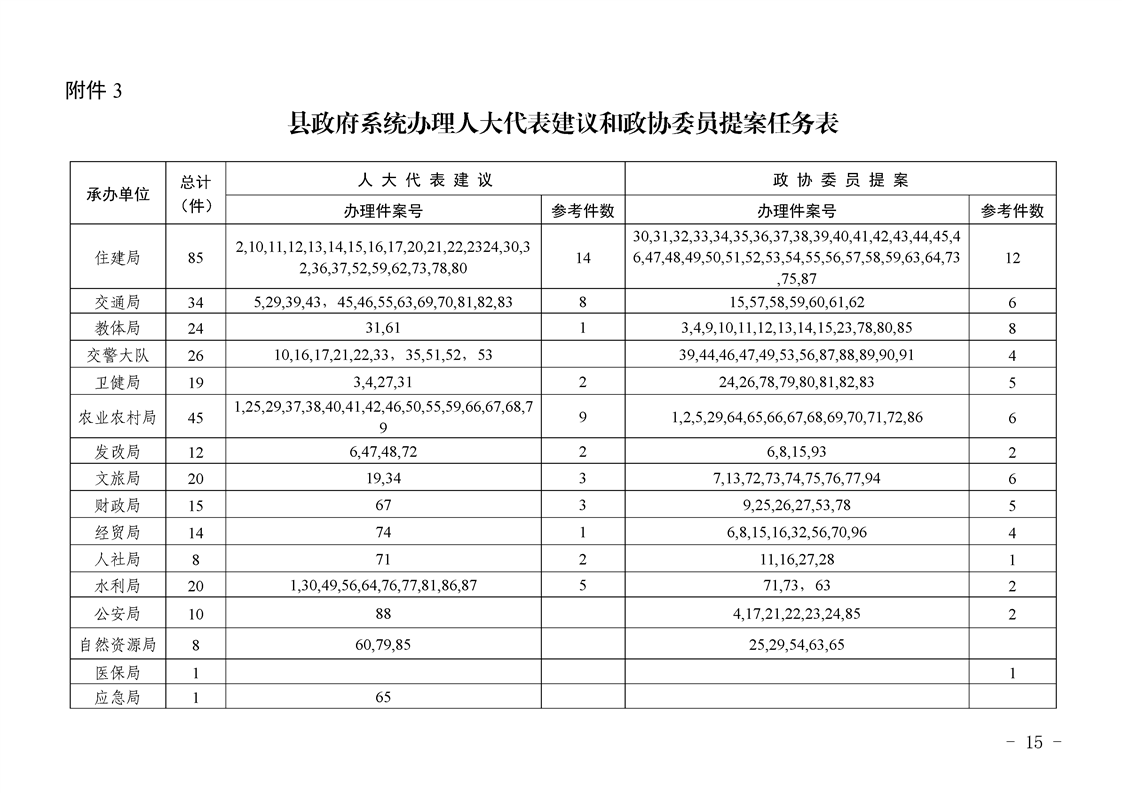 3.縣政府系統辦理人大代表建議和政協委員提案任務表