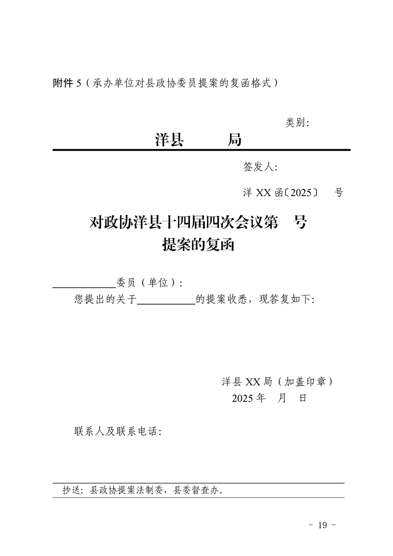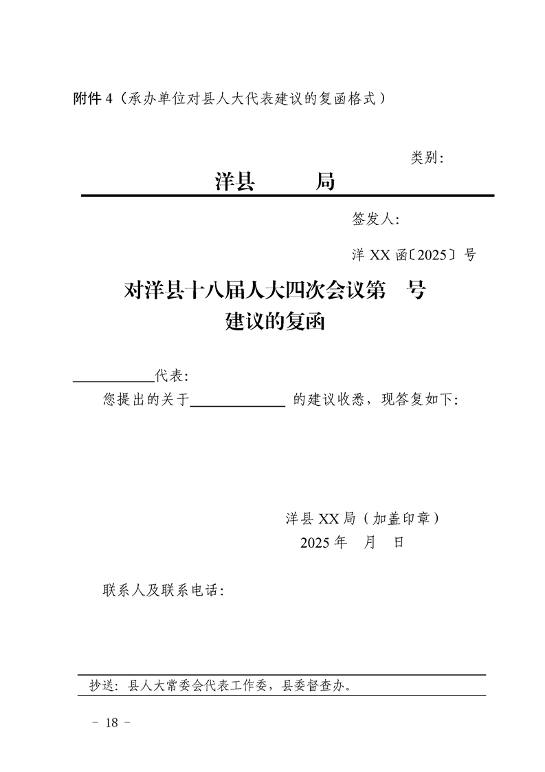代表、委員對辦理結果明確表示不滿意的,須重新辦理,并在1個月內將辦理結果答復代表、委員。所提建議、提案涉及兩個以上承辦單位的,一般由各承辦單位分別辦理。承辦單位之間要加強溝通協作,也可采取聯合復函的形式答復代表、委員。答復函要按照《黨政機關公文處理工作條例》(中辦發〔2012〕14號)文件要求規范答復,統一使用承辦單位公函(文號、類別標注齊全),經縣政府分管領導審簽后及時給予答復,由各承辦單位直接寄送代表、委員。聯名所提的建議提案,應逐一寄送每位代表、委員。同時,要將書面答復函及電子版抄送縣人大常委會代表工作委、縣政協提案法制委和縣委督查辦。