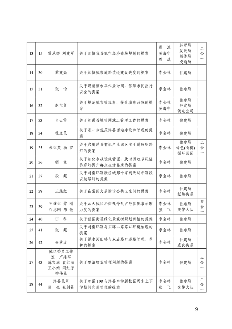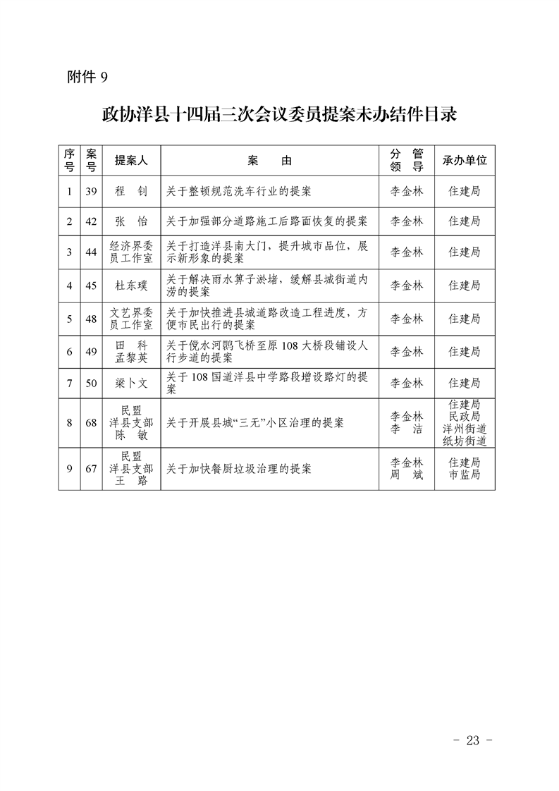 9.政協洋縣十四屆三次會議委員提案未辦結件目錄