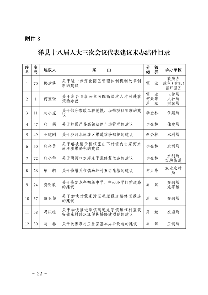8.洋縣十八屆人大三次會議代表建議未辦結件目錄