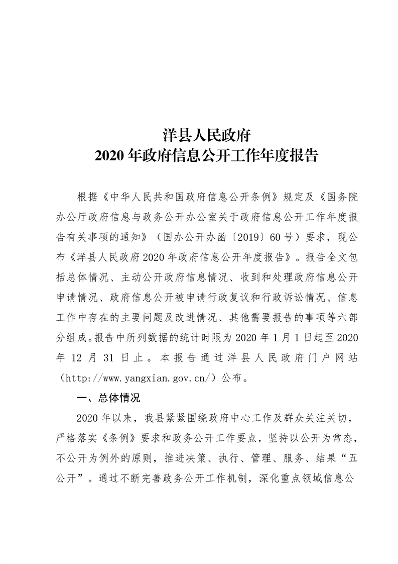 洋縣人民政府2020年政府信息公開(kāi)工作年度報(bào)告 |